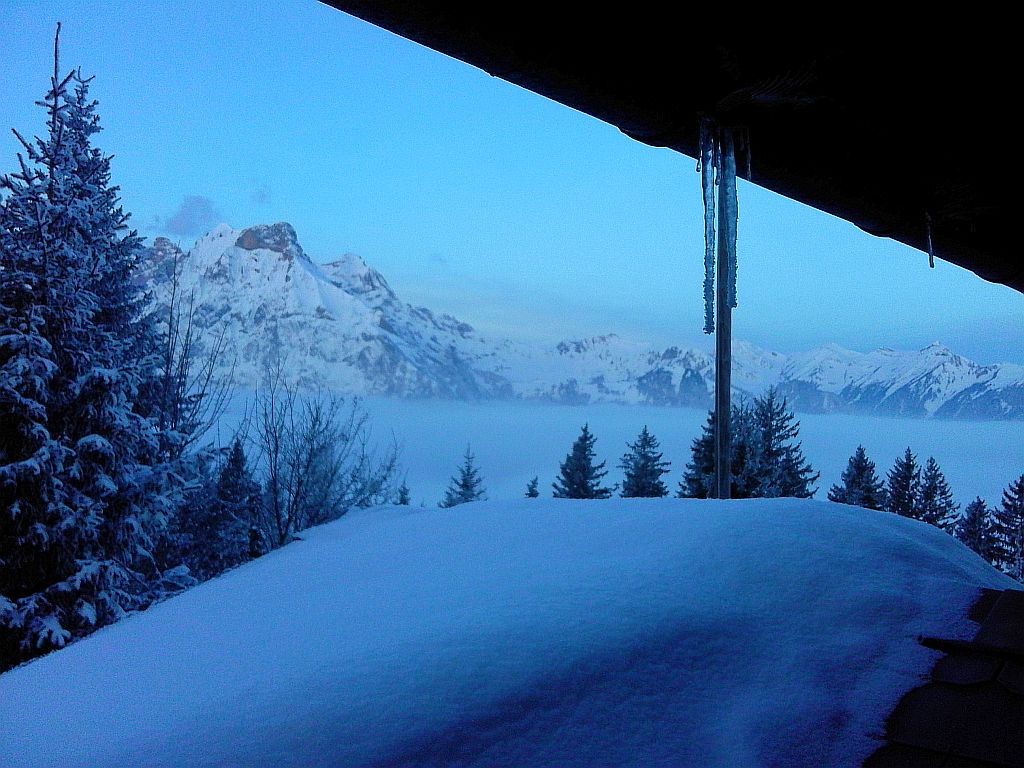 Nach einer ruhigen Nacht, abgesehen einiger Schnee-Gespensterschatten, geht es Samstagmorgens für die fleissigen bereits um 06:30 Uhr wieder los mit einem Krafttraining. Auch die anderen stehen dann bereits um 07:30 alle bereit zum gemütlichen Frühstück (2).