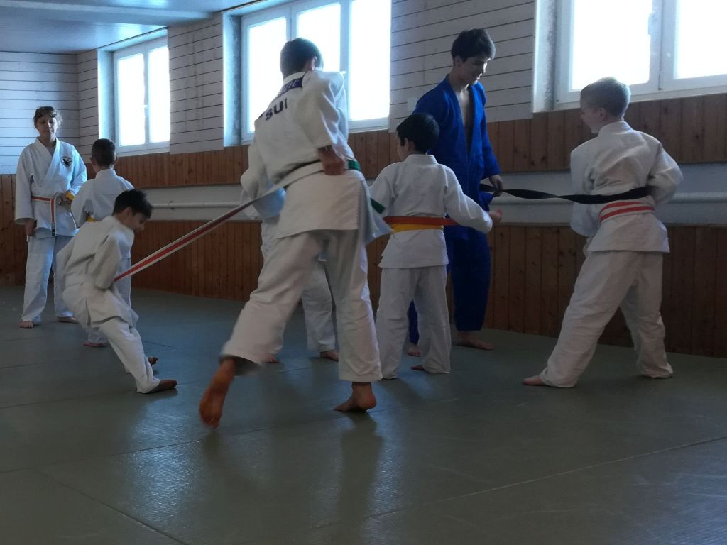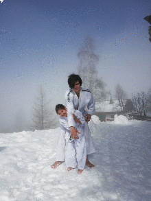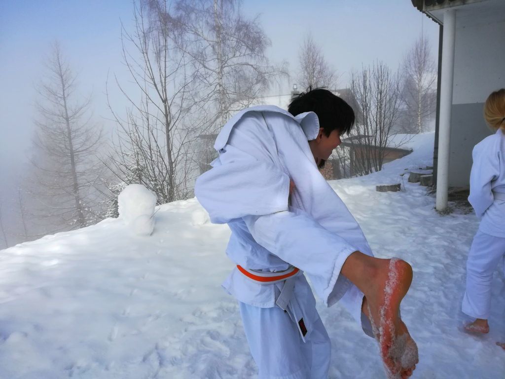 Nach Spaghettiplausch am Mittag geht es um 13:45 wieder zurück auf die Tatami. Unsere Jüngsten zieht es aber schon bald raus in den Schnee zum Spielen, Rutschen und Bauen. Auch unsere Grösseren machen noch etwas Schnee Erfahrung der anderen Art (2). Trainieren aber vor allem fleissig zum Thema Shintai und Nage-no-kata