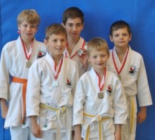 Auch eine Gewichtsklasse höher, bis 40kg, waren zwei von uns im Einsatz. Für Jasper, erst im Frühling mit Judo begonnen, war es der allererste Wettkampf. Seine Kampfbiografie konnte er dann auch gleich mit einem Sieg eröffnen. Auch wenn es anschliessend zu keinem weiteren Sieg mehr reichte, wusste er mit seiner beeindruckend sauberen Technik sehr zu gefallen. Mit einigen Jahren mehr Erfahrung ging Sven ins Turnier. Er musste sich im Verlauf nur einmal geschlagen geben, was aufgrund des Kampfmodus im dritten Rang resultierte. Besonders erfreulich war, dass es Sven gelang sehr aktiv und positiv zu kämpfen.